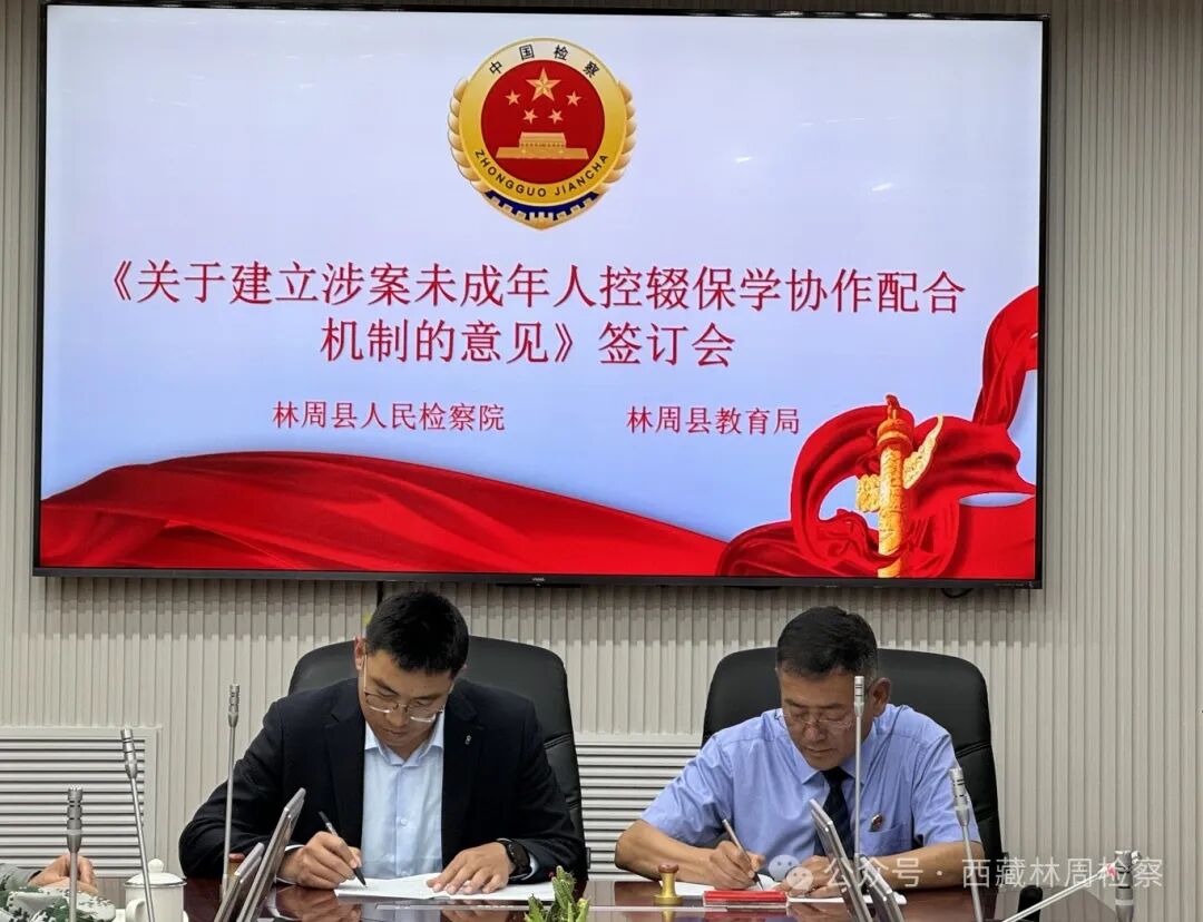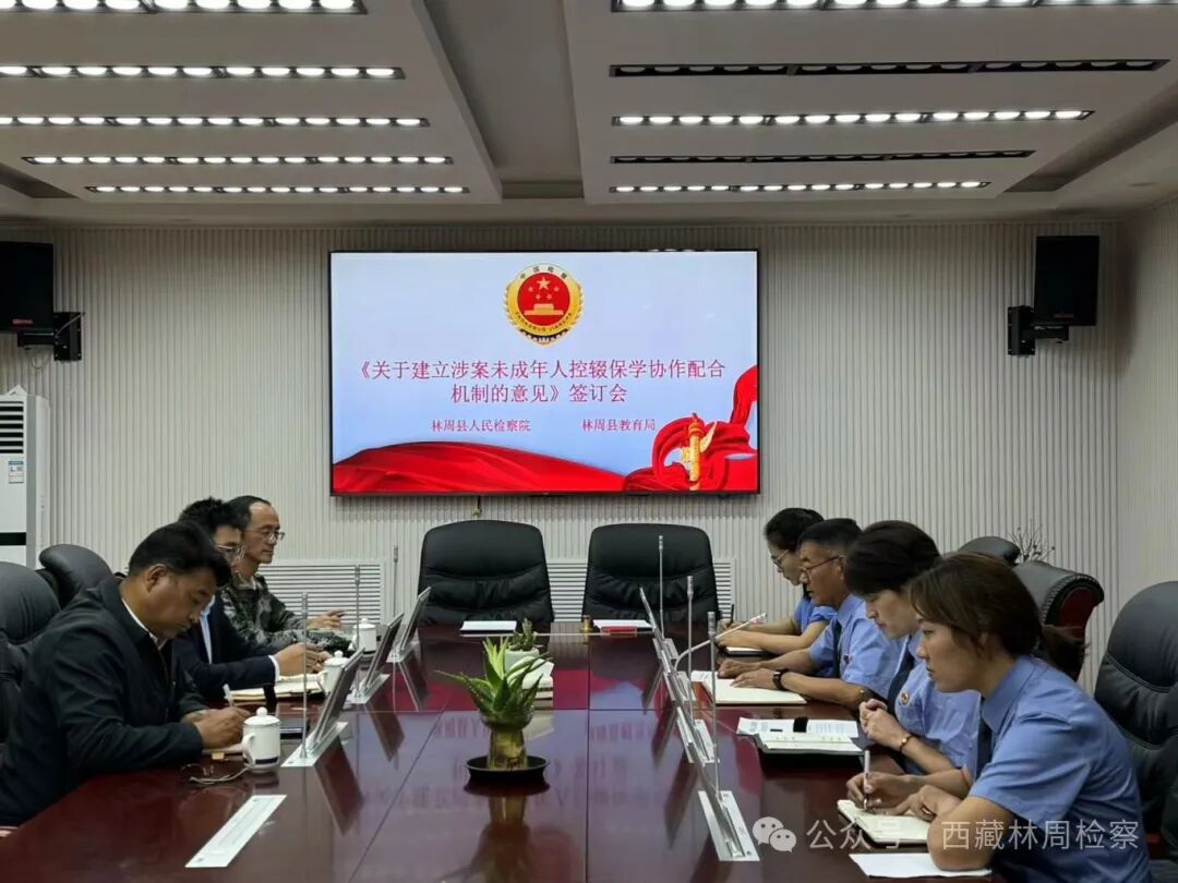 为加强未成年人权益保护,保障涉案未成年学生在义务教育阶段受教育权利,林周县人民检察院召开《关于建立涉案未成年人控辍保学协作配合机制的意见》签订会,会议由林周县人民检察院党组书记、检察长索朗晋美主持,县教育局副局长陈明忠、林周县中学书记宋成林、林周县苏州小学校长次仁扎西、院第一检察部全体干警参加。